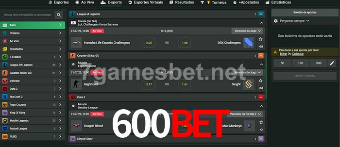 A aposta 600Bet oferece aos jogadores a experiência mais conveniente de apostas em eSports!